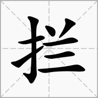 (形声。从手,阑(lán)声。本义:阻挡;遮拦)