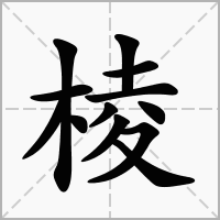(俗作“楞”和“稜”。形声。从木,夌(líng)声。本义:有四角的木)
