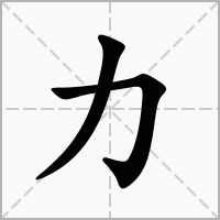 (象形。甲骨文字形,象耒形,有柄有尖,用以翻地。用耒表示执耒耕作需要花费力气。“力”是汉字部首之一。本义:体力,力气)