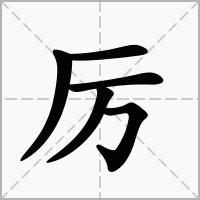 (是“砺”的本字。从厂(hàn),象山崖形,表示与山石有关。本义:磨刀石)