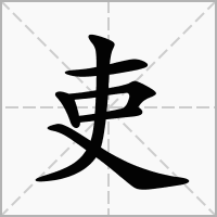 (会意。甲骨文。从手(又),从中。以手持中。有人认为中为笔。“吏”、“事”、“使”古同字。本义:官吏)
