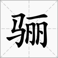 又如:骊马(黑色的马;齐驱并驾的马);骊龙(古代传说中颔下有珠的黑龙);骊珠(宝珠。传说出于骊龙颔下);骊驹(黑色的小马)