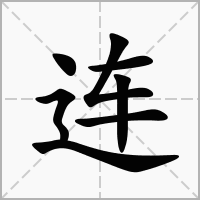 又如:藕断丝连;连观(互相连接的楼台);连舻(舟船相连);连属(连接;连续);连枝(树枝相连;连在一起的树枝);连行(鱼类相随而行);连眉(两眉相接连);连云(比喻高与云齐)