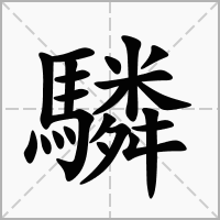 〔骐(qí)~〕a.古代骏马名;b.古同“麒麟”,传说中的祥兽,形似鹿,独角,全身有鳞甲。