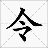 又如:令书(天子所下的书面命令);令官(行酒令的指挥官);令君(县令);令人(宋代命妇的封号。太中大夫以上官员之妻封令人;又指衙役,差役);令牌(发令的木牌);令众(号令示众);喝令(大声命令)