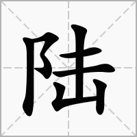 (会意。从阜(fù),表示与地形地势的高低上下有关,从坴(lù),土块很大。“坴”亦兼表字音。本义:陆地,高而平的地方)