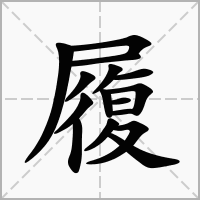 (会意。小篆字,从尸,即人;从彳(chì),表示与行走有关。履在战国以前一般只作动词用。一般用“屦”称鞋子。用“鞋”是唐以后的事了。本义:践踏)