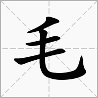 (象形。金文字形。“毛”是汉字的一个部首,从“毛”的字多与皮毛有关。本义:眉毛、头发、兽毛)