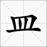 (象形。小篆字形,象碗、盆之类的食器。本义:器皿)同本义。泛指碗碟杯盘一类饮食用具
