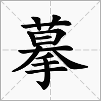 (形声。从手,莫声。本义:临摹,照着样子描画、写字)