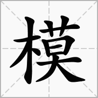 又如:模拓(把金石等器物上的图画、文字照原样印下来);模刻(照原样摹写雕刻);模象(描绘形容);模画(照事物原貌描画);模碑(摹刻有图文的石碑);模传(模拓而传播);模样(描摹形状情态);模写(照原样描绘);模帖(照帖摹写);模山范水(用文字或图画描绘山水景物)