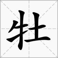 (会意。从牛,土声。甲骨文字形,左为阳性生殖器。本义:雄性的鸟兽)