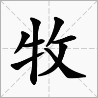 (会意。甲骨文字形。从牛,从攴(pū),表示手拿棍棒牧牛(羊)。本义:放牧牲畜)
