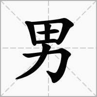 (会意。从田,从力。表示用力(一说指耒)在田间耕作。本义:男人,与“女”相对)