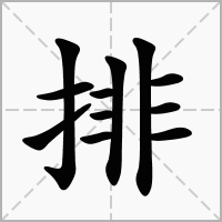 又如:排次(依次排列);排班(排队站立);排栅(军事防御设施。用巨木排列连成的栏栅);排推(排列成行,依次向前);排连(排行相连);排仗(排设仪仗);排偶(排比对偶);排单(名单)