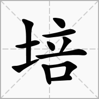 (形声。从土,咅(pǒu)声。本义:给植物或墙堤等的根基垒土)