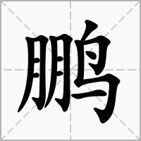 (形声。从鸟,朋声。“鹏”是传说中最大的一种鸟,由鲲变化而成。本义:大鹏)