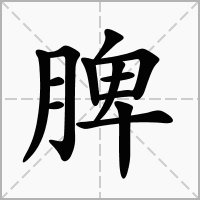 (形声。从月(肉);卑声。本义:脾脏。人和脊椎动物的内脏之一,是贮血和产淋巴与抗体的器官,有调节新陈代谢的作用。中医称“五脏”之一)