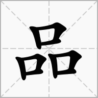 又如:品人(众多的人);品事(诸多事项);品物(各类特定范围之物);品供(各种供品);品象(众人);品庶(众人百姓);品极(众多)