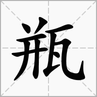 又如:花瓶(插花用的瓶子);瓷瓶;暖瓶;两瓶牛奶;喝了一瓶酒;瓶彝(祭器);瓶落水(“不”的隐语。瓶子掉进水里,水往瓶里灌,挤出空气,发出不、不、不的声音,故称)