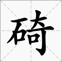 (形声。从石,奇声。本义:曲折的堤岸)同本义