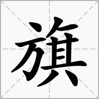 又如:旗纛(古代军队和仪仗队用的大旗);旗牌(担任传递号令等的武吏);旗鼓(指枪棒等武艺的架式、门户);旗头(旗手);旗麾(将旗)