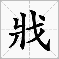 (会意。从戈,从爿。戈,古代用以横击、钩杀的重要武器。爿(pán),劈开的竹木片。本义:残杀、杀害)