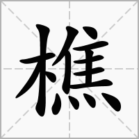 又如:樵楼(谯楼);樵门(谯楼之门。也泛指城门);樵鼓(即谯楼之鼓,用以报更)