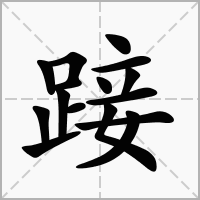 〔~蹀(dié)〕小步行走的样子,如“众~蹀(dié)而日进兮,美超远而逾迈。”