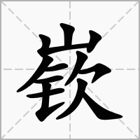 又如:嵚岑(高峻);嵚崖(高险的山崖);嵚崟(山高的样子);嵚崎(形容山高峻)