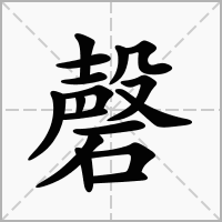 又如:磬折(弯腰;卑躬屈膝);磬沼(形容曲折的池)