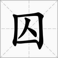 (会意。从人在囗(围)中。本义:拘禁、囚禁)