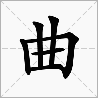又如:曲录(弯弯曲曲);曲律(曲吕。弯曲的样子);曲弯弯(像弓一样弯);曲蟮(蚯蚓);曲盖(古时仪杖用的曲柄华盖);曲兵(形体弯曲的兵器)
