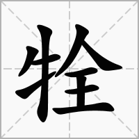 又如:牷物(牷牲,牷牺。纯色的全牲)