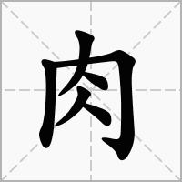 (象形。甲骨文 字形,小篆,象动物肉形。“肉”是汉字的一个部首。本义:动物的肌肉)