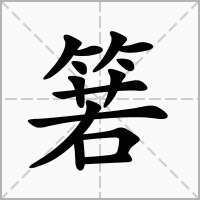 又如:箬篷(用箬叶编的船篷);箬篓(用箬竹编的篓);箬包船(一种头部尖狭,船顶上包有穹形箬篷以蔽烈日、雨雪的船);箬粽(用箬竹叶包的粽子)