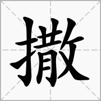 (形声。从手,散声。字本从米,殺声。本义:散布)