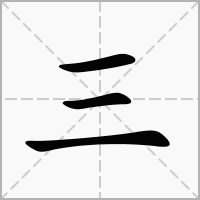 又如:三叉(三歧的道路);三木(古时套在犯人颈、手、足上的刑具);三节(农历二月一日中和节、三月三上巳节、九月九日重阳节);三学(太学、武学、宗学;或指府学、州学、县学);三衙(三次,三回);三巡(斟茶或酒三次);三休(三顿);三脚猫(比喻虚有其名而无真本事的人);三班六房(明清时地方官署中吏役的总称);三已(谓三度或多次罢官);三五(谓十五天;十五岁)