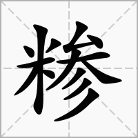 又如:玉米糁;糁盆(以麻籸为燃料的照明火盆;旧俗岁时送神或祠祭、燕设,燃火于门外以祀神,兼取旺盛之相,亦谓之籸盆,燃料不限于麻籸)
