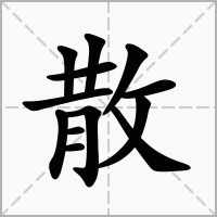 又如:散福(分食祭祀后的食品,布福);散子(撒种);散灰扃户(在地上撒灰,将门户关锁);散花(使花朵飘散);散金(散发钱财);散传(分支传播);散振(为救济人而分发财物);散配(分发);散财(分发财物);散赡(散发财务以接济别人);散积(散发所积存的财务);散赐(分赐)