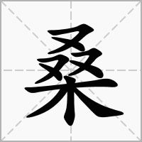 (会意。从桑,从木。桑者。神桑也。本义:植物名)