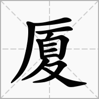 (厦俗作厦。古通作夏。形声。从广,夏声。广(yǎn)表示房屋。“夏”古有“大”的意思。见《尔雅·释诂》。本义:大屋子)