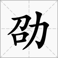 (形声。从力,召声。本义:勉励)同本义