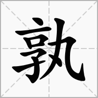 (会意。小篆字形。左上是“享”,左下是“羊”,表示食物是羊肉;右边是“丮”(jí),表示手持。合起来表示手持熟食来吃。本义:熟,煮熟)