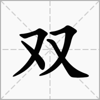 又如:双人舞;举世无双;双红(双红帖。比单帖大一倍,从中折合,用红纸,故名);双林(即沙罗双树,佛祖示寂(死亡)的地方);双阙(古代宫殿、宗庙与陵墓前左右各一个的高台楼观);双套飞车(两头牲口拉的快车);双骞(双飞);双七(指农历七月七日);双丸(指日和月);双角(两角);双杵(古人捣衣,对立执杵如舂米,故名双杵);双枚(屋内的重檐);双关儿透(很透彻);双栖(指禽鸟雌雄同栖息。借喻夫妻形影不离);双靥(脸的两颊);双向沟通(指让意见沟通的双方均能有公平的机会,坦然地表达讯息的意义)