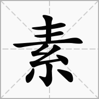 又如:素纸(白纸;没有写过字的纸);素衣将敝(比喻人处境艰难,生活困苦);素练(白色的熟绢);素车(以白土涂饰的车);素风(秋风);素秋(即秋季,古代阴阳五行家以金配秋,其色白,故称秋季为“素秋”);素娥(指月宫中仙女“嫦娥”。因月色白,故称“素娥”)