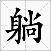 (形声。从身,尚声。本义:平卧)