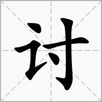 (会意。从言,从寸。言,言论。寸,法度。用言论和法度进行处治。本义:声讨)