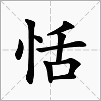 又如:恬波(水面平静无波。比喻太平无事);恬和(安静温和);恬忽(心中恬静而不受外界杂务所干扰);恬夷(安静平和);恬安(安静;安逸);恬澜(波澜平静)