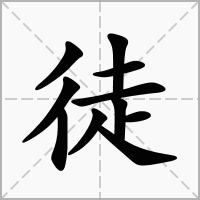 又如:徒徙(无舟船乘载而徒步过水);徒跣(赤足步行);徒践(赤足步行);徒杠(供徒步行走的小桥);徒负(徒步负荷);徒行(步行;无事闲行)